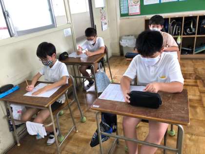 1時間目に学習したメモの取り方を生かして、6時間目に話すこと・聞くことのテストを行いました。