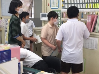 15分休みに放送をしてみんなに呼びかけています。今日は熱中症のことではなく、雨が降っているので校舎内を走らないように気をつけて過ごそうという内容でした。
