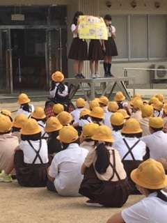 今週は「食育月間」です。給食委員会から、給食や給食室前の掲示物などのお知らせがありました。みんな黙って静かに聞いています。