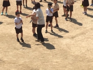 リコーダーの演奏も教室ではなかなか難しいです。運動場で、タンギング練習をしました。