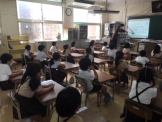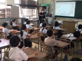 初めてのイングリッシュタイムです。アルファベットやかんたんなあいさつなどを話しました。聞き取りにくくても、これから何回も聞いていると耳が育ってきます。楽しみながら取り組めるように工夫しています。