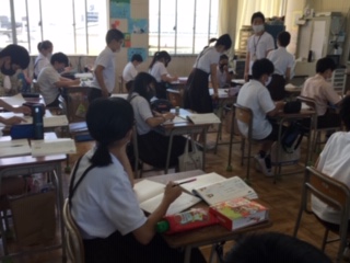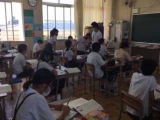 「防災ポスターを作ろう」の単元で、ポスターのキャッチコピーを考えました。一人ずつ順に発表しています。友達のアイデアを聞いて、短い言葉で、耳障りの良いものがポスターを見た人に訴えるのだということに気づきました。