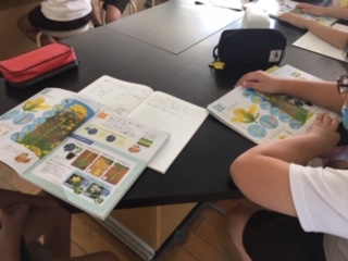 花のつくりの学習をしていました。学校休業中だったので、残念ながらアブラナの花を実際に観察することはできませんでした。けれど、子どもたちは教科書を見たり、経験を話したりして深めていきました。