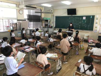 国語の時間には、リズムに合わせて「あめですよ」を音読しました。