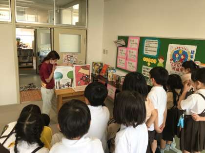 子どもたちは、読み聞かせが大好きです。集中して楽しそうに聞いていました。