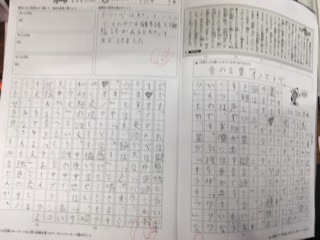 5.6年生は、朝日小学生新聞の天声子ども語の書写しを行っています。筋道だった文章の書き方が分かります。また、内容から見出しを考えていますが、インパクトのある見出しを考えることで、読み手を意識して短くまとめる力も身についていきます。1時間目が始まる朝学習の時間などで行っています。