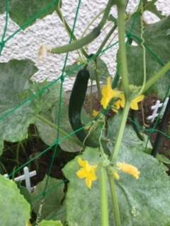 毎日水やりを頑張っています。きゅうりとなすが大きくなりました!きゅうりを試食すると、とてもみずみずしくシャキシャキしています。