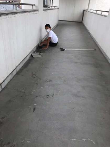 そうじ時間に、渡り廊下の溝を丁寧にそうじしている姿を発見しました。