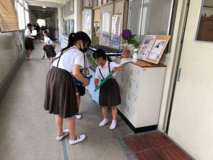 6年は、目の高さを合わせて「ここは、◯◯する部屋だよ。」「職員室には、失礼しますと言ってから入るんだよ。」とにこやかに教える姿を見せてくれました。すごくほほえましい光景です。
