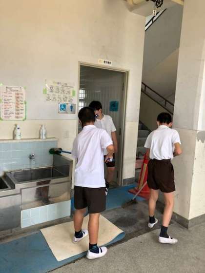 トイレ掃除は、大阪市から出ているマニュアルに沿って、掃き掃除のみ子どもが行っています。放課後に職員は、消毒やトイレ掃除をしています。