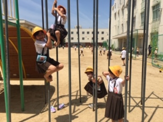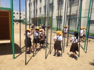 暑さに負けず、元気に外で遊んでいます。「のぼりぼう、ここまでのぼれるようになったよ!」と見せてくれました!