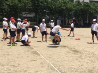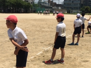 ソフトボール投げと立ち幅跳びの練習をしました。今年は新体力テストは行いませんが、去年までの記録をもとに新たに挑戦しています。