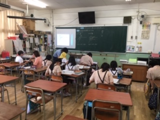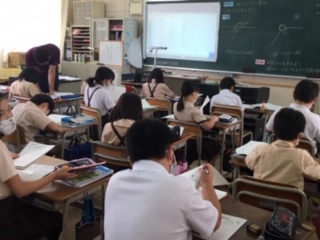 コース別に分かれて学習しています。今日は、180度より大きい角度の求め方を考えました。分度器では180度までしか測ることができません。どうすれば良いか、速く求められる方法はないか考え、どんどん問題を解いていきました。
