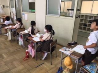 「ぽんたとかんた」という登場人物が、行ってはいけない裏山に行こうかやめようか迷いながら、葛藤を乗り越えてやめるというお話を通して、自分だったらどうするか、どうして2匹は、気持ちよく変えることができたのかなどについて考えました。