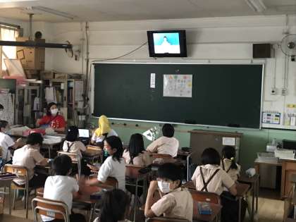 集会委員会による児童集会は、雨のため、テレビ放送で行いました。◯??クイズです。初めての放送集会を楽しんで参加しました。