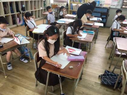 言葉集めをしました。しりとりになるようにどんどんつなげていきました。