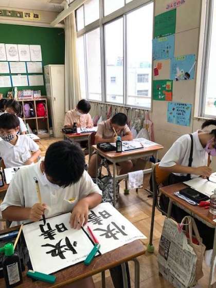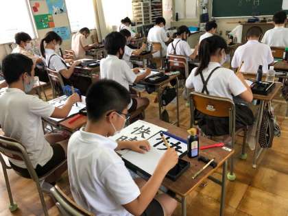 今日は6年生になって初めての毛筆の学習でした。筆順と点画のつながりを確かめて、丁寧に書きあげました。