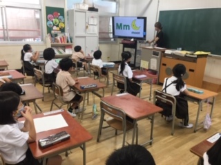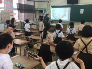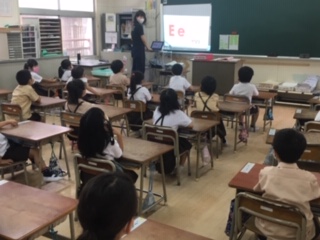 「アルファベットの歌」は掃除の時間にも流れていて、子どもたちは覚えています。音楽にに合わせて、振りもつけて楽しんで歌っています。