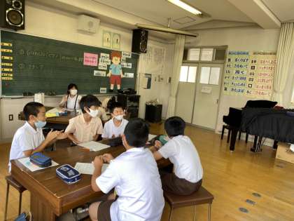 「バナハ」に合わせてリズム打ちをしたり、鑑賞曲の楽器の音色と関わり合いに気をつけてワークシートに分かったことを書き込んだりしています。