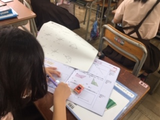 角度を求める問題に挑戦です。分度器を使ったり、計算で求めたりとどれが速いか考えて、たくさんの問題に挑戦しました。