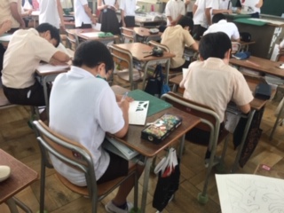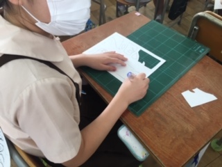 想像した木を書いて、それをカッターナイフで切り抜き、形を作ります。最後に色をつけます。どんな素敵な木が出来上がるかな。楽しみですね。
