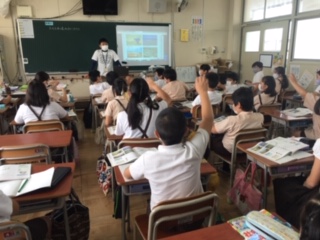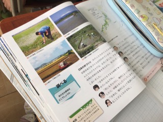 教科書の4つの地域の米作りの写真を見て気づいたことを発表しました。稲刈り、田植えをしているところなど同じ時期なのはなぜか考えました。