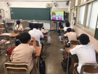 週2回、全学年で朝の英語タイムを実施しています。