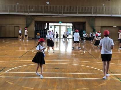 講堂で「ふえおに」をしました。久しぶりに会ってお互いの顔を覚えていて、嬉しそうな様子でした。短い休み時間を楽しそうに過ごしていました。