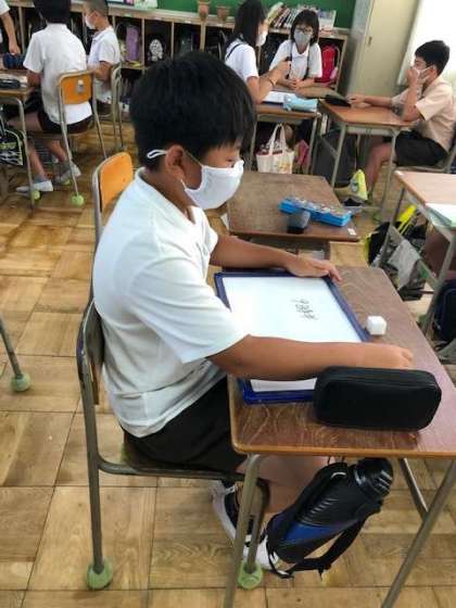 「◯◯さんの好きな果物は?」「◯◯さんの星座は?」「◯◯さんの好きな教科は?」などのお題をホワイトボードに書いています。
