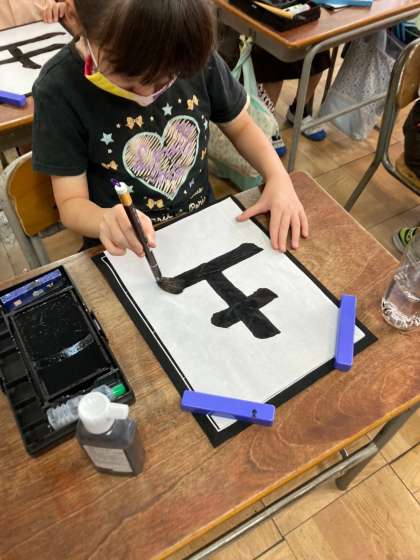 3回目の毛筆の時間です。新しいことは、緊張するけど、ヤル気もモリモリ。頑張っています!