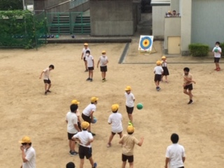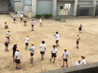 梅雨の晴れ間を楽しんでいます。ボール遊びの後は、しっかり手洗いをしています。