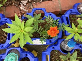 一人一鉢の栽培活動として、マリーゴールド、ほうせんか、ミニひまわりを植えています。プール近くの花壇のそばに並べているので、雨が続いて観察も行けませんでした。今日は晴れたので、久しぶりにじっくり観察できました。