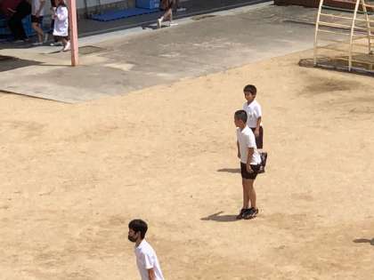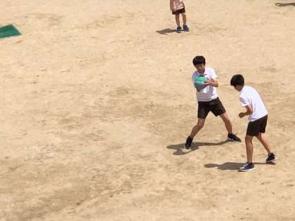 久しぶりに晴れたので、昼休みは運動場でボール遊びをして過ごしている人たちもいました。