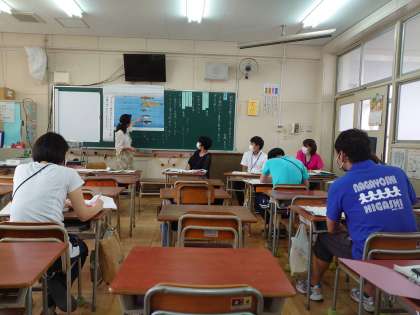 研究授業の後、研究討議会、全体会を行いました。教育委員会指導部学力向上指導員のY先生に、新学習指導要領のポイントなどから教材文でおさえなければいけないところなどを教えてくださいました。子どもたちがよく育っていること、本校が熱心に研究を積み上げてきたので先生たちの力がアップしていることなどたくさん褒めてくださいました。
