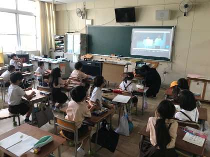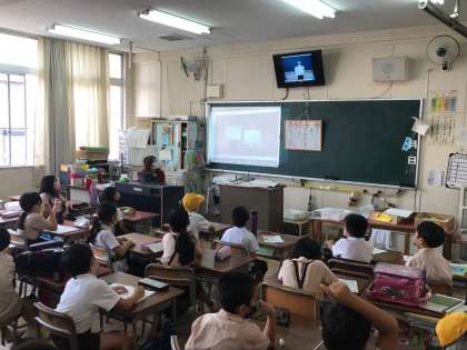 テレビやプロジェクターを活用して、「大宮小学校が誕生した年」や「音楽室に飾られた作曲家の人数」など、学校に関わるクイズを行いました。大宮マスターとなれたかな?