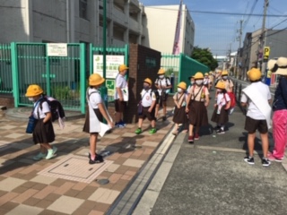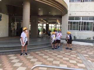 代表委員会のメンバーは、少し早く登校してたすきをかけて準備をしています。みんな、元気な声であいさつををしています。