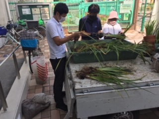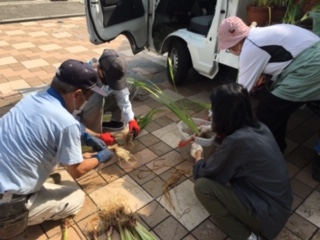 今日は、4年生から引き継いだ菖蒲の株分けです。朝早くから旭区役所、鶴見公園事務所、地域のグリーンコーディネーターの方々が準備をしてくださいました。