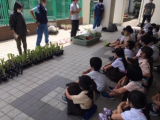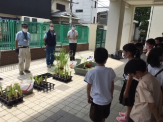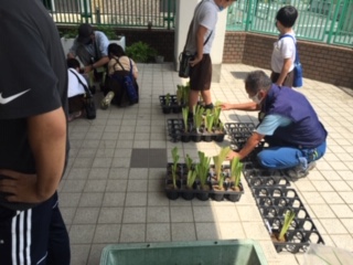 一人一人の株は、ビオトープに置いています。水やりを忘れないようにして、きれいな菖蒲の花を咲かせましょう!