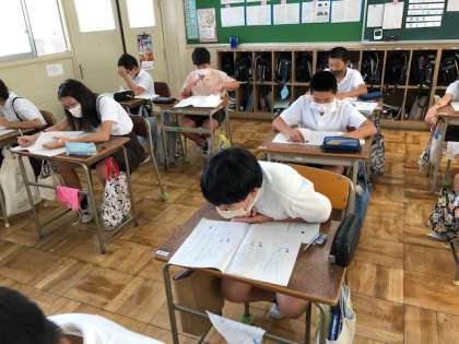 新型コロナによる休校が長引いたこともあり、中止になってしまった学力テストの問題が学校に届いたため、挑戦しました。