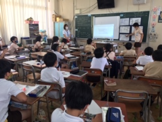 小数で表された倍の数の求め方を考えました。2倍、3倍など整数倍なら簡単に求めることができても、小数倍になるとちょっと戸惑います。かけ算だけでなく数直線を使っても考えたり、わり算をして確かめたりしました。
