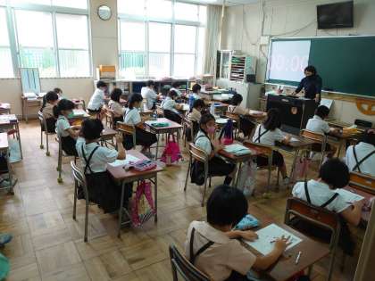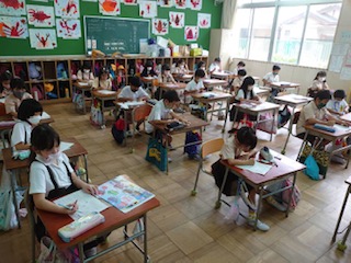 学年で統一した国語のプリントをしました。時間を区切ってやり、答え合わせもしました。読む力、考える力をつけていきます。