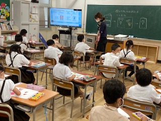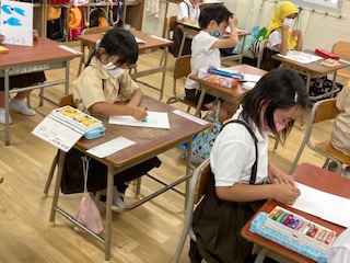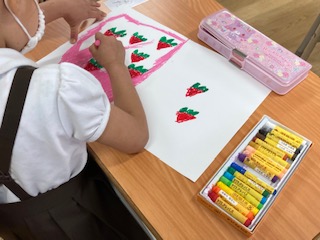 ひき算のお話を作りました。画用紙に絵を描いて説明しました。