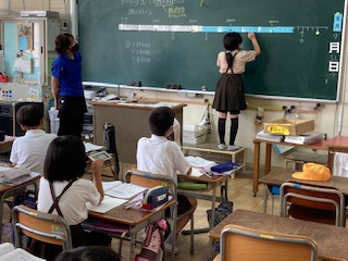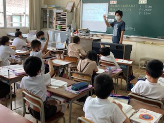 3つの教室に分かれて学習しています。数直線上の数を読んだり、数を数直線上に表したりする学習です。