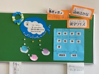 「魚偏の漢字クイズ」が出ています。鰆、鮪、鱈など読めそうで読みにくい漢字などが出ています。