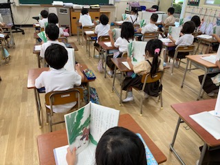 何度も音読をしています。かぶを引っ張る人数によって声の大きさを工夫して読んでいます。