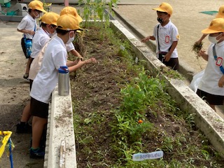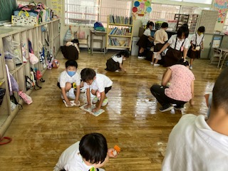 もうすぐ1学期も終わりです。みんなで教室をきれいにしました。教室前の花壇の雑草も抜きました。