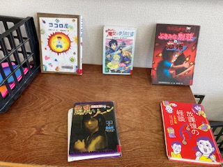 「怖い本コーナー」ができました。でももうほとんど借りられています。おすすめの本の紹介もだんだん増えてきましたよ!