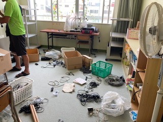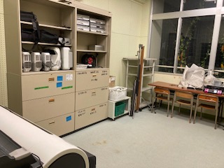 放送室の奥に古い視聴覚機器などが詰め込まれていました。今日、3人の視聴覚部の先生が、汗だくになって片付けてくれました。すっきり、きれいになりました!