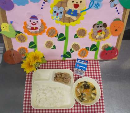 2学期開始に合わせて給食も始まりました。今日は、豚肉のしょうが焼き、みそ汁、ごはん、牛乳でした。給食のみそ汁は昆布と削り節でとった出し汁に具沢山で旨味がたっぷりです。「おいしかった!」の声をたくさん聞けました。