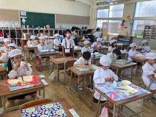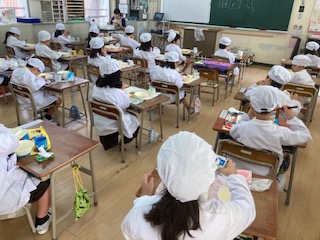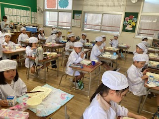久しぶりの給食。「とってもおいしーい!」と大満足の一年生です!!
